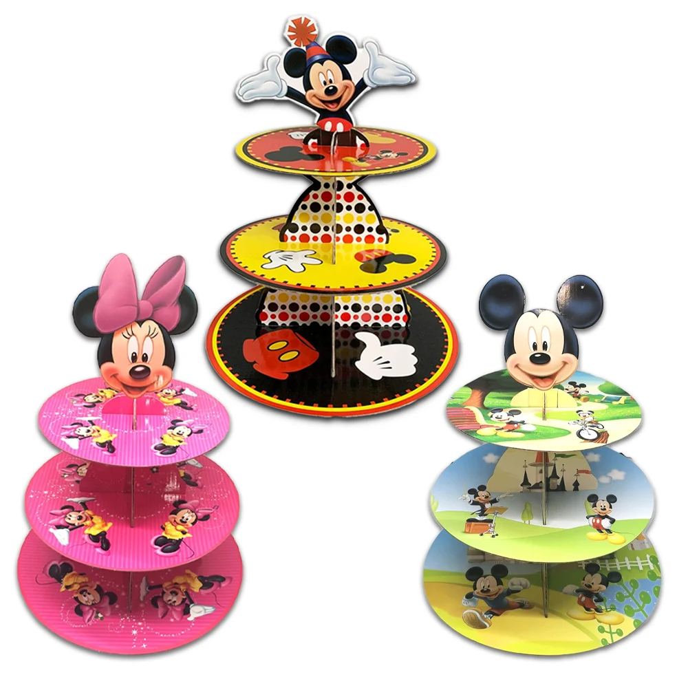 1set 3 Tier Minnie Mickey Mouse Birthday Party Decoration Cake Stand Cupcake Holder Disposable Dessert Display Wedding Party Supplies