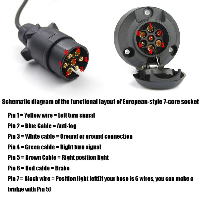 Pin 7 = Black wire = Position light left(If your hose is 6 wires, you can make a bridge with Pin 5)