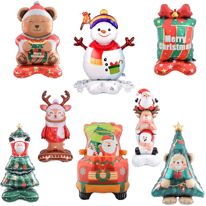 1set Giant Stand Pedestal Christmas Theme Foil Balloons Snowman Santa Claus Tree Elk Balloon Christmas Decorations