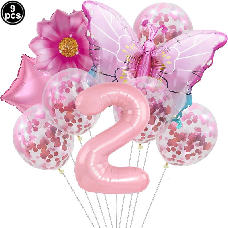 9pcs Pink Butterfly Balloons 32inch Number Balloon Set Happy Birthday Butterfly Foil Balloon Baby Shower Birthday Party Decors