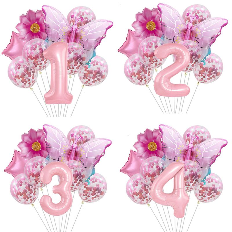 1set Pink Butterfly Balloons 32inch Number Balloon Set Happy Birthday Butterfly Foil Balloon Baby Shower Birthday Party Decors