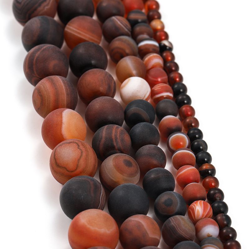 1strand Natural Stone Matte Coffee Stripe Agates Beads Natural Brown Loose Spacer Beads for jewelry making bracelet pick size