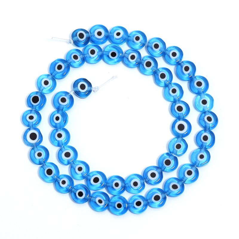 1String 4 6 8 10mm Lampwork Flat Round Beads Multicolor Evil Eye Loose Spacer Glass Beads For DIY Charm Bracelet Accessories