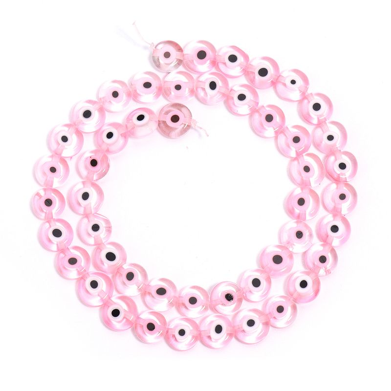 1String 4 6 8 10mm Lampwork Flat Round Beads Multicolor Evil Eye Loose Spacer Glass Beads For DIY Charm Bracelet Accessories