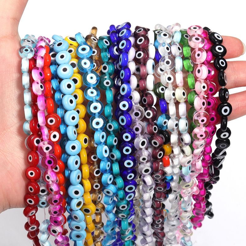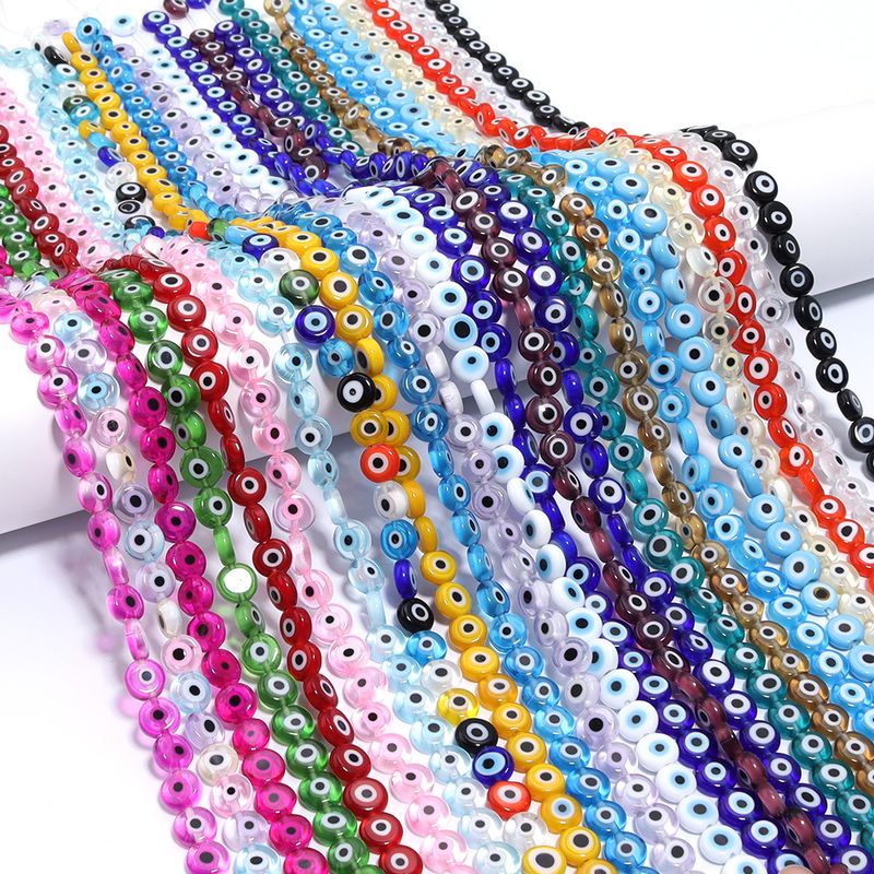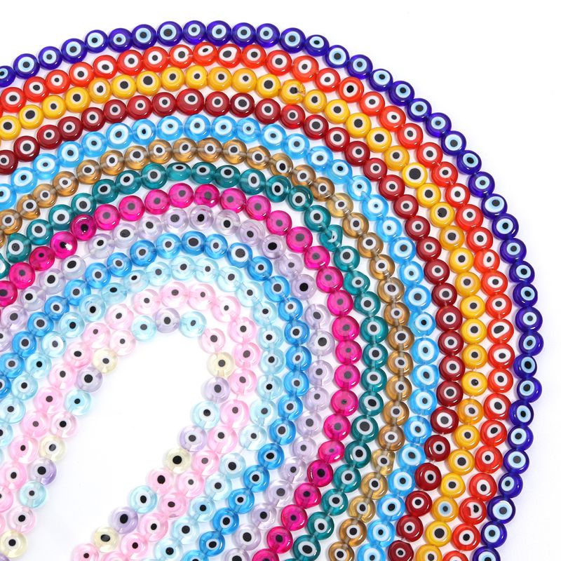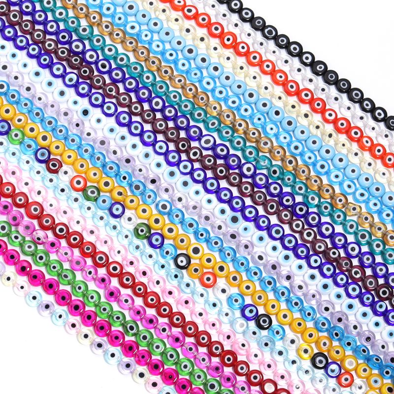 1String 4 6 8 10mm Lampwork Flat Round Beads Multicolor Evil Eye Loose Spacer Glass Beads For DIY Charm Bracelet Accessories