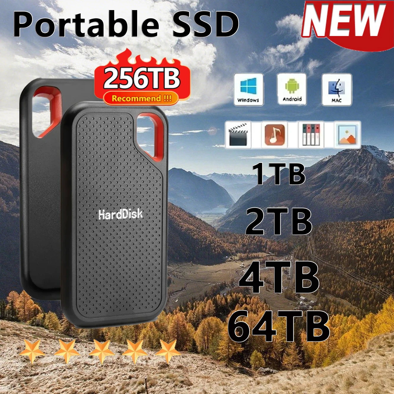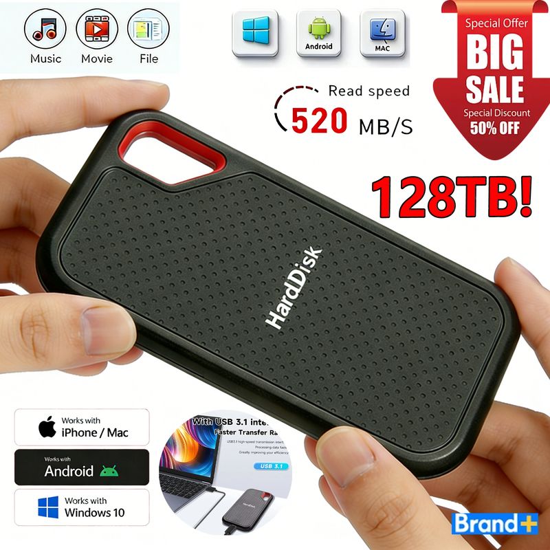 1TB/2TB High-speed Solid-state Drive 128TB Large Capacity External Hard Drive Type-C Storage Device for Desktop/PC/Mac/Phone