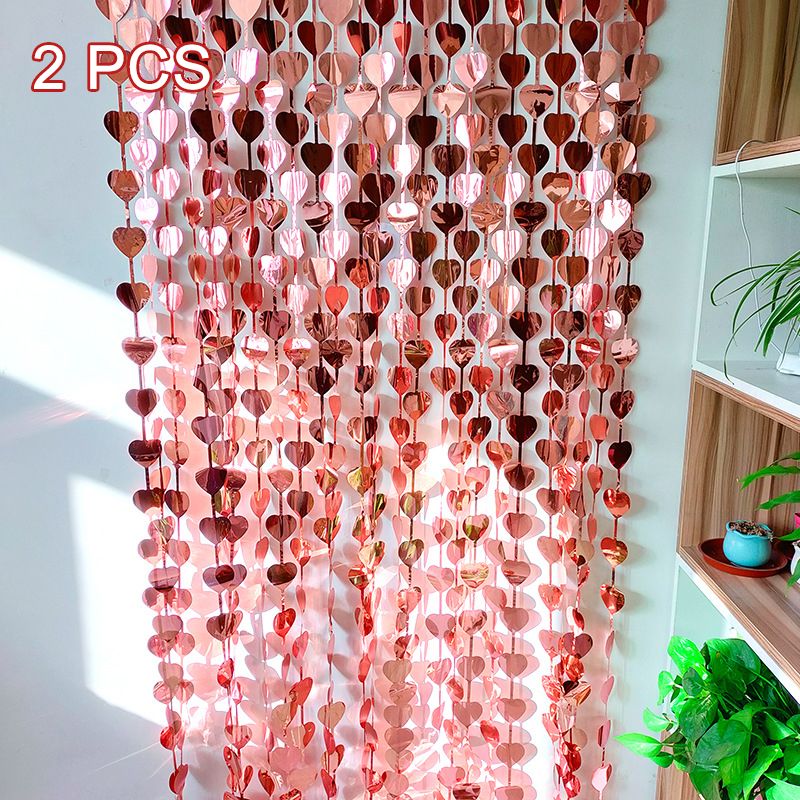 1x2m Red Heart Background Wall Decoration Valentine's Day Romantic Metal Foil Tassels Curtain Wedding Birthday Party Decoration