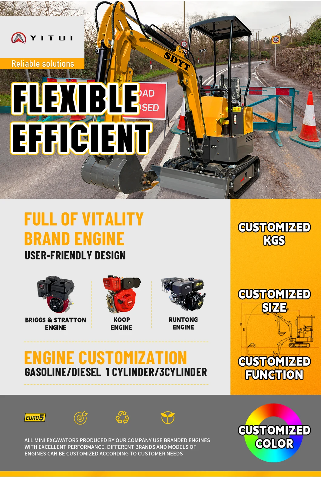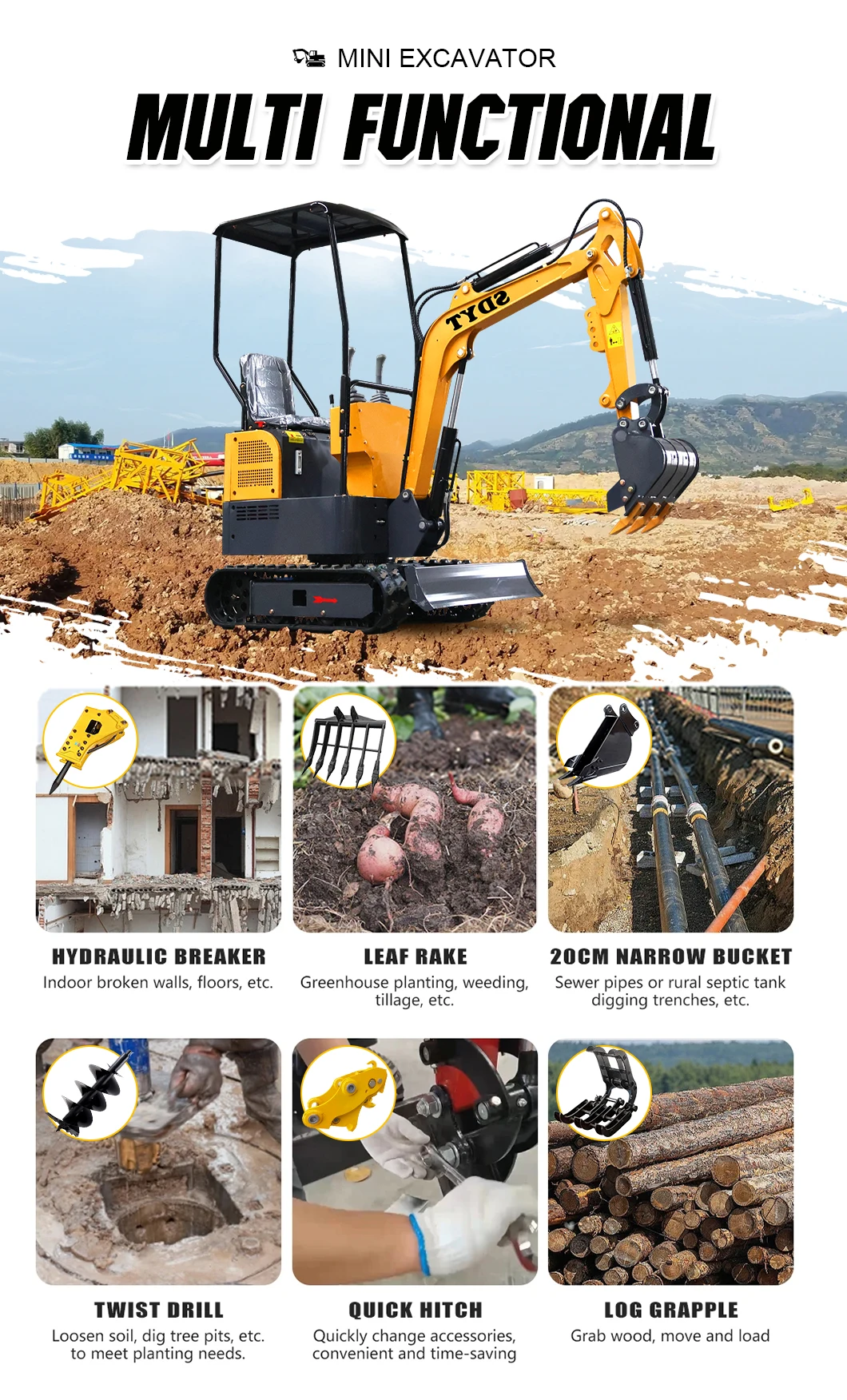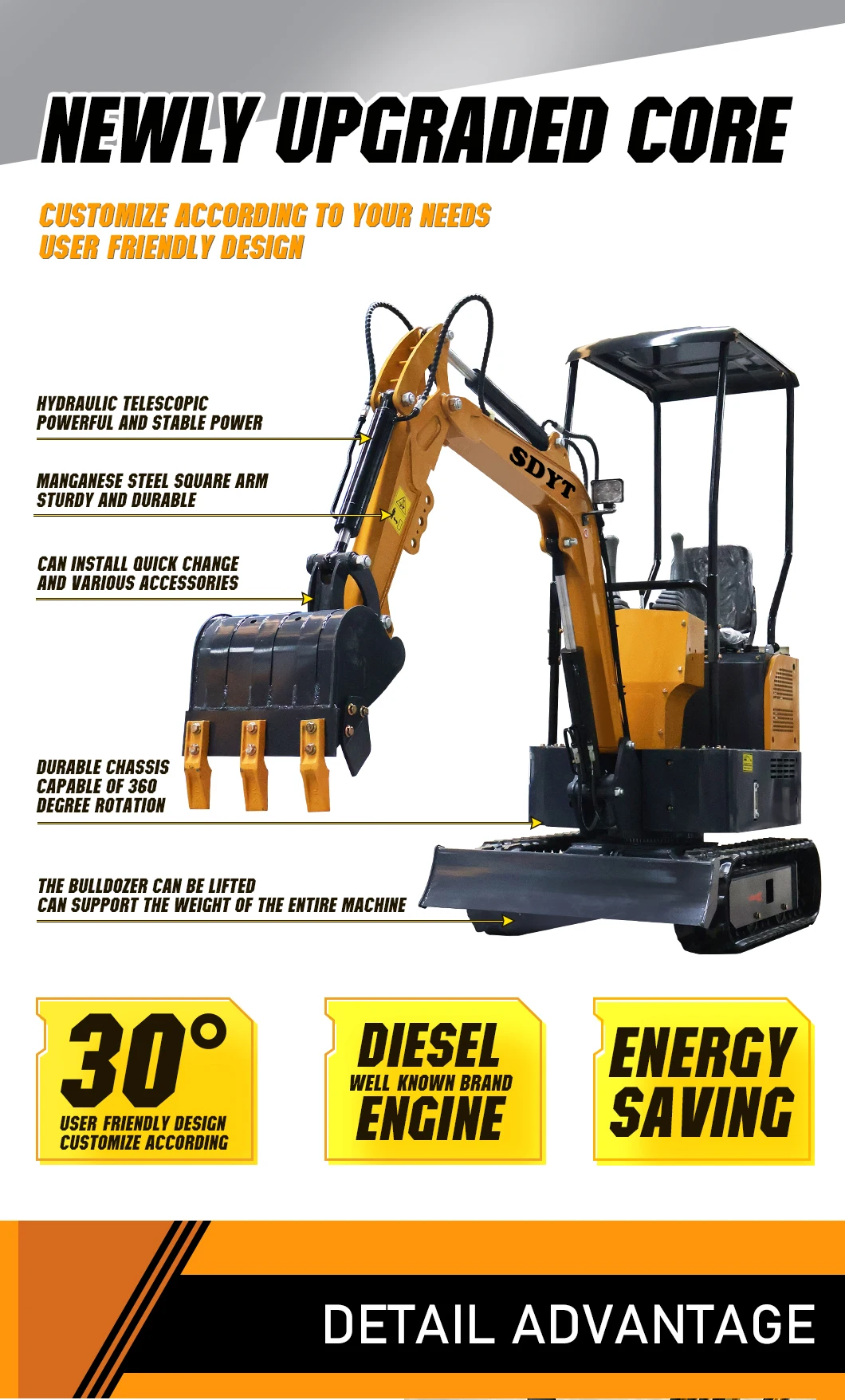 2.0 Ton Mini Excavator Mini Digger 360° Rotation Replaceable Assistive Arm Side Swing Customized Bucket Replaceable Bucket