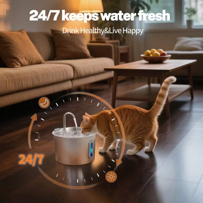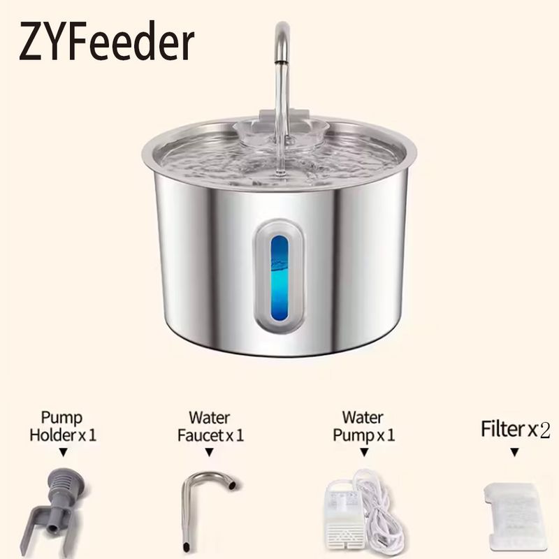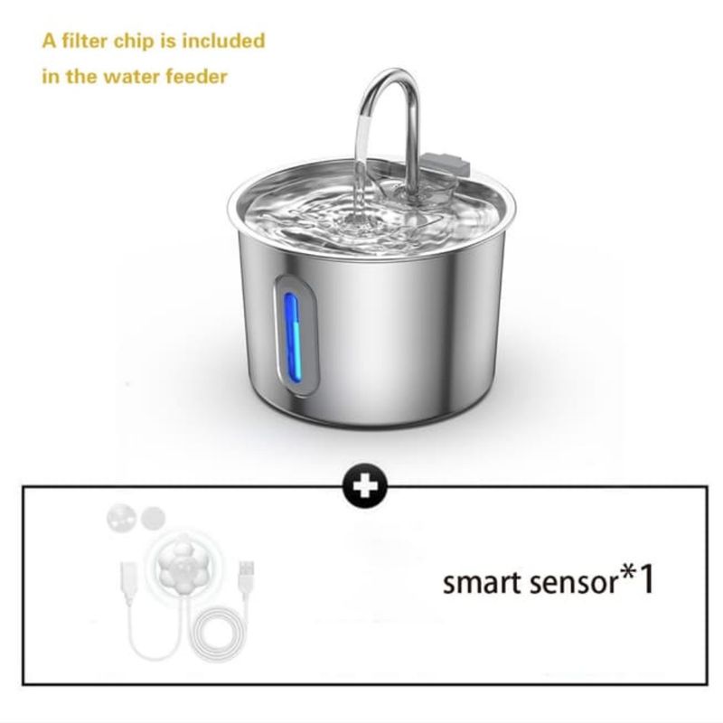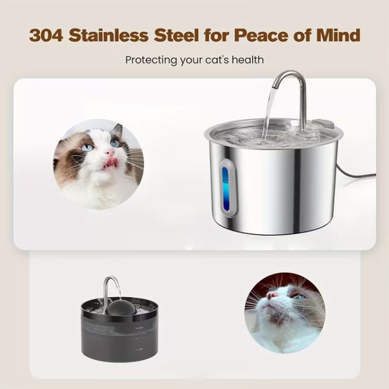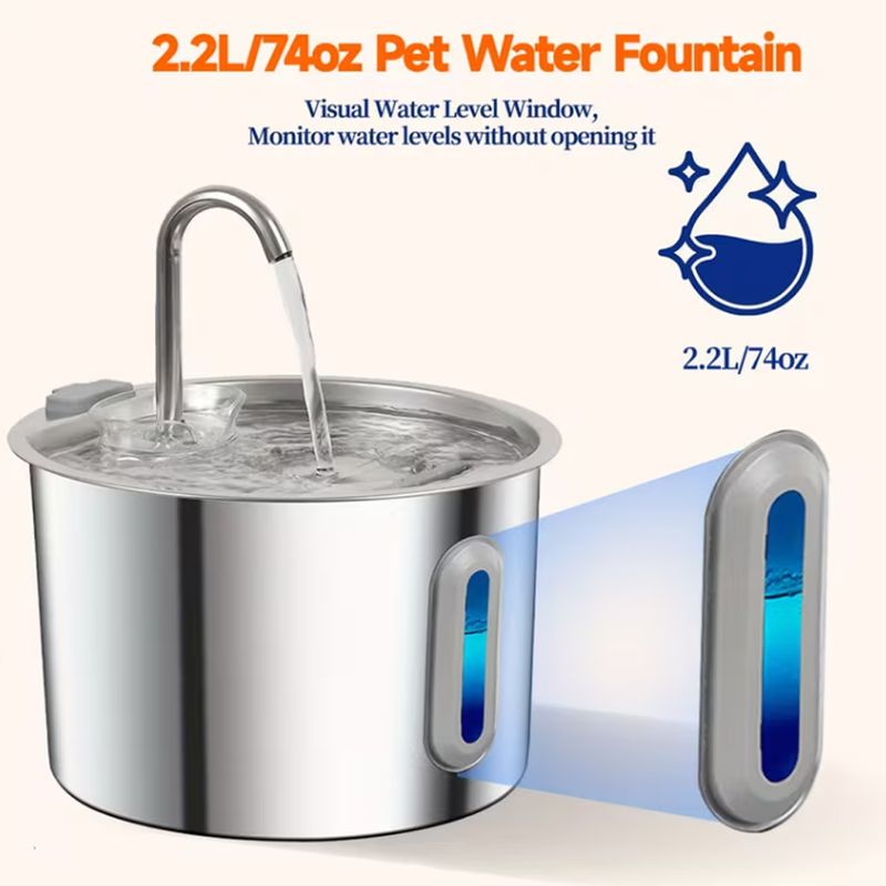 2.2L Cat Auto Drinking Water Dispenser Smart Dogs Fountain Pet Water Feeder Window Stainless Steel Water Bowl(No 5V 1A Plug)