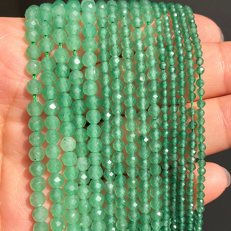 2 3 4mm Green Natural Faceted Gem Stone Aventurine Mica Agate Bead Round Mineral Beads For Jewelry Making DIY Bracelet Accessory