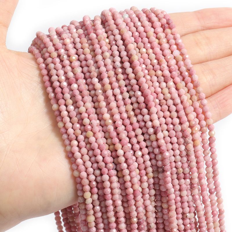 Items Name:2 3 4mm Natural Faceted Pink Zebra Tourmaline Rhodonite Opal Gem Stone Beads Round Mineral Beads For Jewelry Making DIY Bracelet Accessory