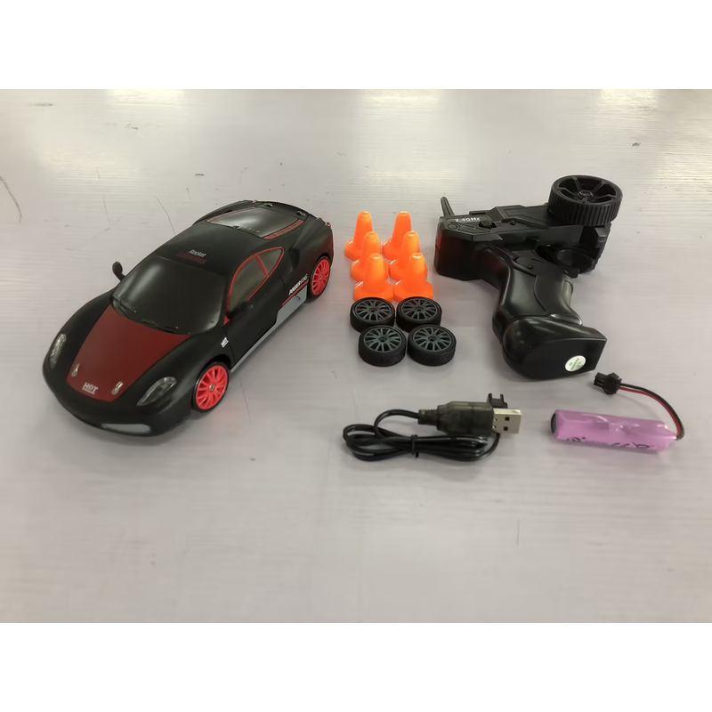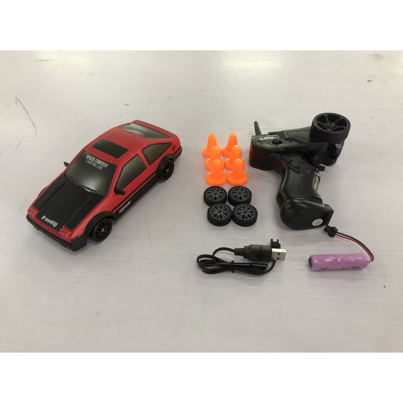 [Racing Drift Equipped]: Remote control drift car is equipped with 4 racing tires, 3.7V 500mAh Rechargeable Battery and USB Charging Cable, and 6 Traffic Cones. You only need such a car to experience the fun of racing and drift.