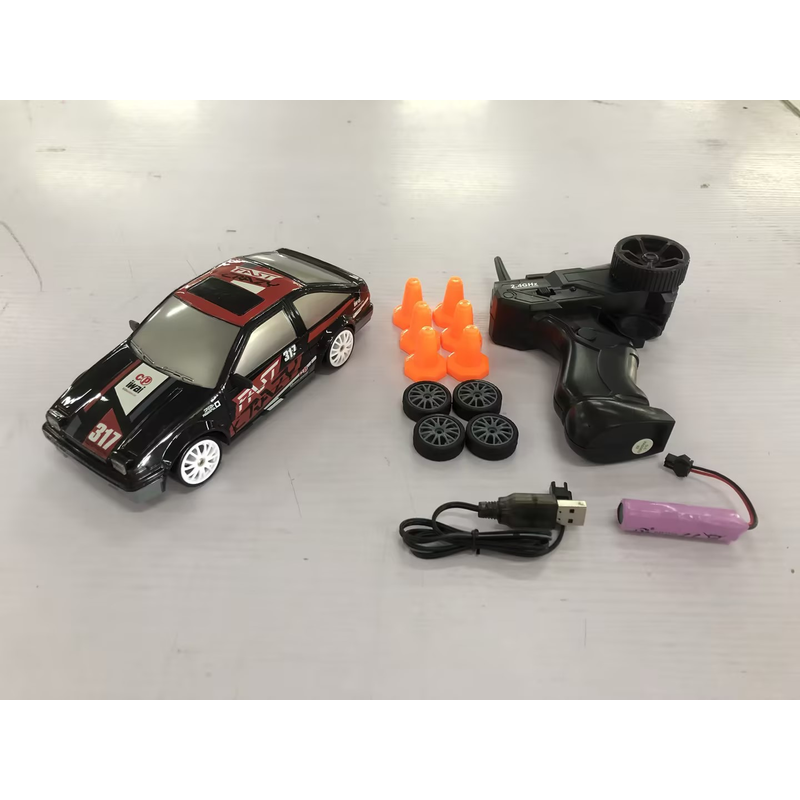 [Racing Drift Equipped]: Remote control drift car is equipped with 4 racing tires, 3.7V 500mAh Rechargeable Battery and USB Charging Cable, and 6 Traffic Cones. You only need such a car to experience the fun of racing and drift.