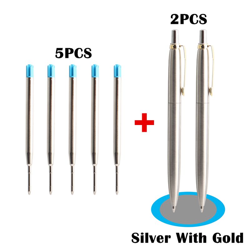 2+5/Set Office Pen 2PCS Metal Ballpoint Pen With Refill Gift Stationery Core Automatic Ball Pen For School Office Ink Blue Black