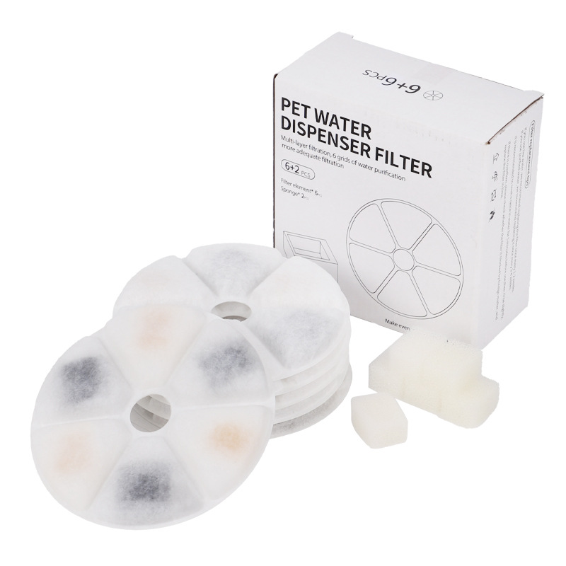 5. 4 Layers Filtration System: The automatic cat water dispenser is equipped with filter and filter sponge and is made of high-density cotton, coconut shell, activated carbon and ion exchange resin. The activated carbon filter can remove odor and soften water quality, improve taste, provide purer and fresher water for your lovely pets to prevent them from getting sick