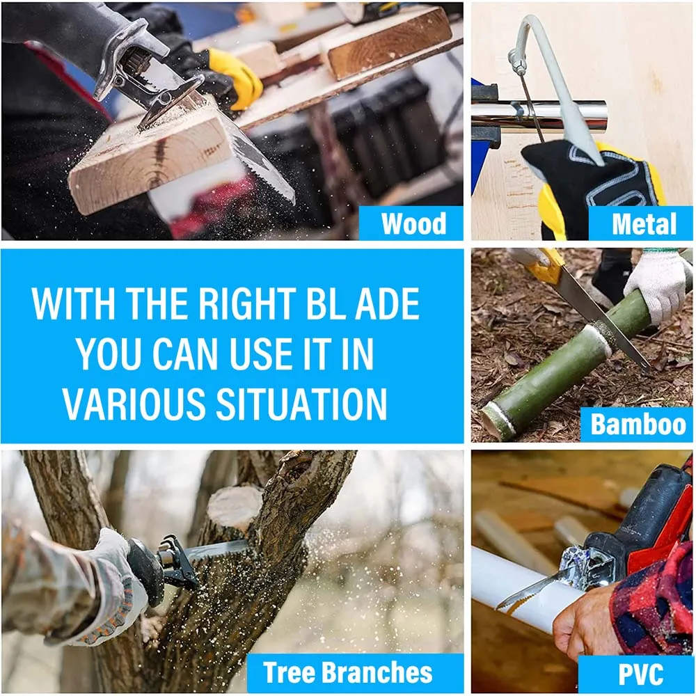 FREE GET 4 BLADES - Includes 4 quality blades so you can get to work right away. 1Pcs 6TPI wood blades, 1Pcs 5TPI wood blade, 1Pcs 18TPI Metal blade, 1Pcs 14TPI Metal blade