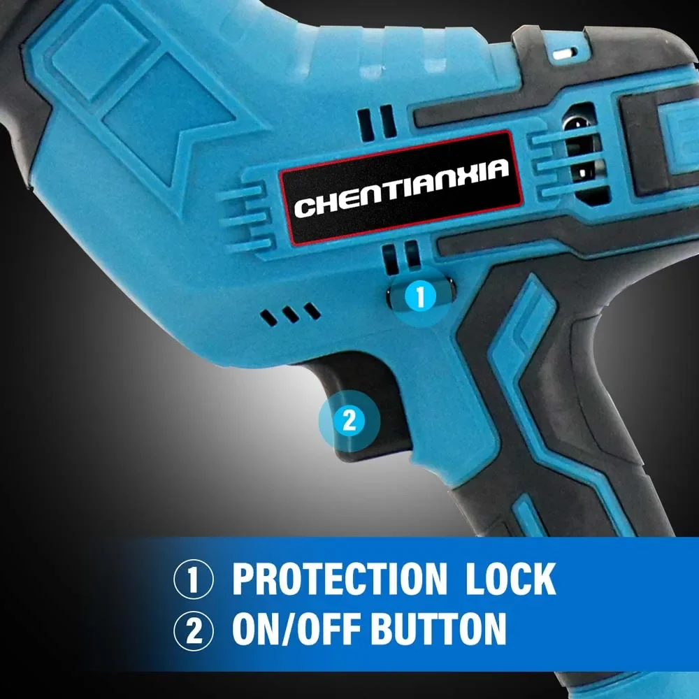 VARIABLE SPEED TRIGGER - reciprocating saw with variable speed trigger to remove more material per stroke and deliver a superior control feeling. Including a variable speed trigger, lock-on switch and an electric brake.
