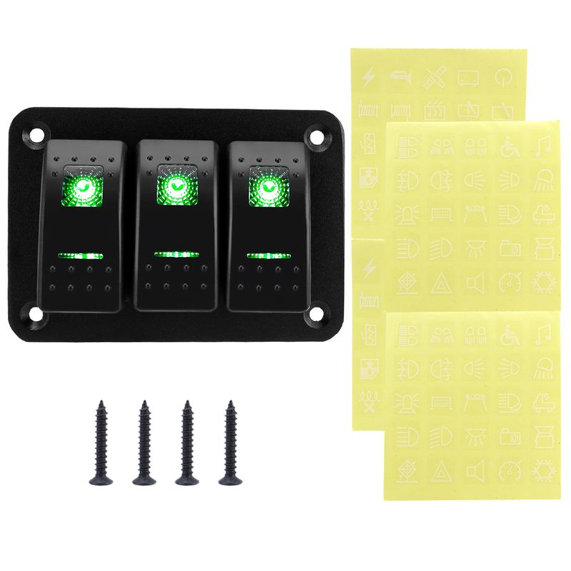 2-group, 3-group, 4-group, 5-group, 6-group, 8-group rocker switch panel 5-pin, suitable for 12V/24V cars, ATV trailers, green.