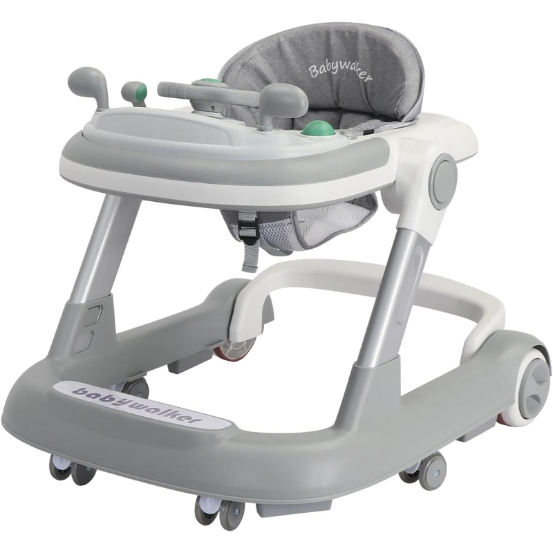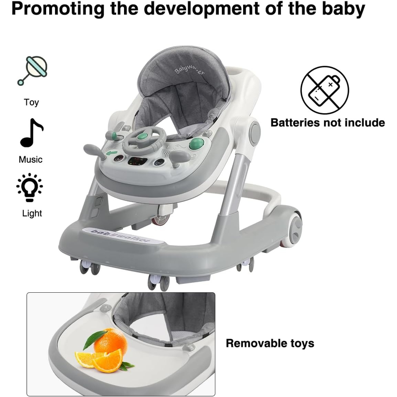 2 in 1 Baby Walker, Toddler Baby Push Walker with Removable Feeding Tray and Music Tray(Without Battery), Foldable Walker