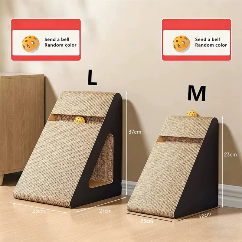2 In 1 Cat Scratcher Cardboard Triangles Shaped With Spinnings Balls Sturdy Anti-Scratch Relieves Cat Stress Toy For Pet Use