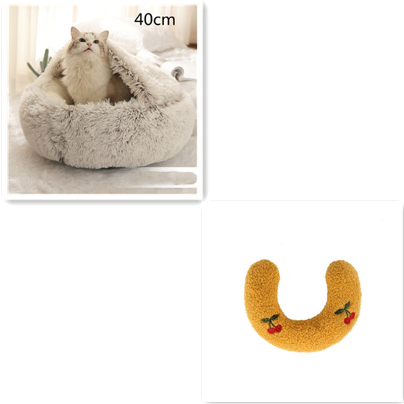 2 In 1 Dog And Cat Bed Pet Winter Bed Round Plush Warm Bed House Soft Long Plush Pets Bed Pet Products Brown 40cm setA