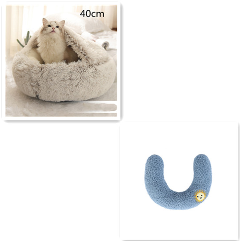 2 In 1 Dog And Cat Bed Pet Winter Bed Round Plush Warm Bed House Soft Long Plush Pets Bed Pet Products Brown 40cm setD