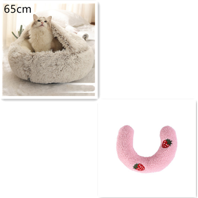 2 In 1 Dog And Cat Bed Pet Winter Bed Round Plush Warm Bed House Soft Long Plush Pets Bed Pet Products Brown 65cm SetC