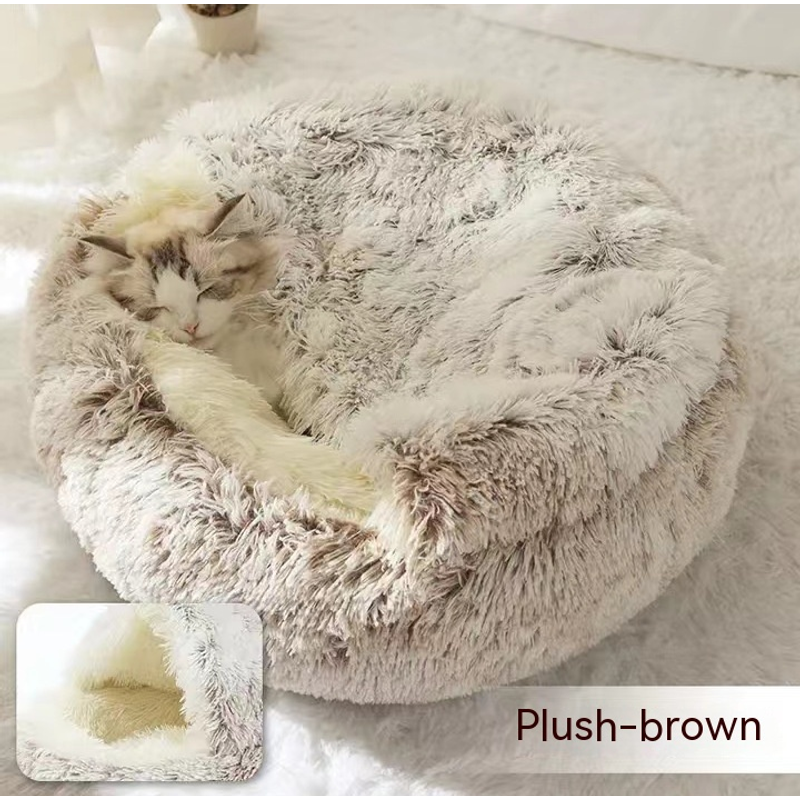 2 In 1 Dog And Cat Bed Pet Winter Bed Round Plush Warm Bed House Soft Long Plush Pets Bed Pet Products Coffee plush 80cm