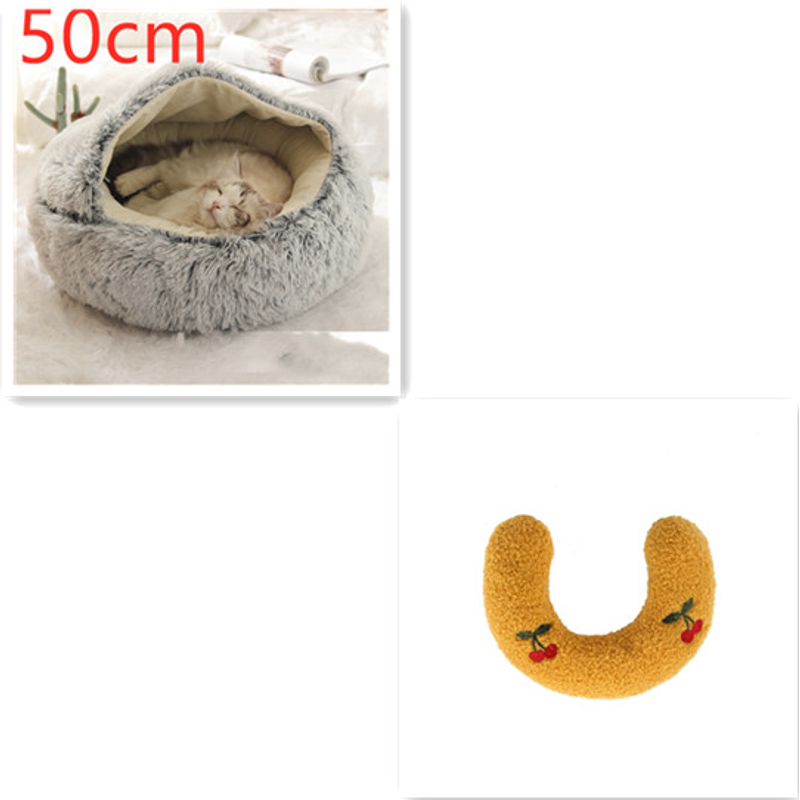 2 In 1 Dog And Cat Bed Pet Winter Bed Round Plush Warm Bed House Soft Long Plush Pets Bed Pet Products Grey50cm SetA