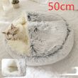 2 In 1 Dog And Cat Bed Pet Winter Bed Round Plush Warm Bed House Soft Long Plush Pets Bed Pet Products Hair Grey50cm