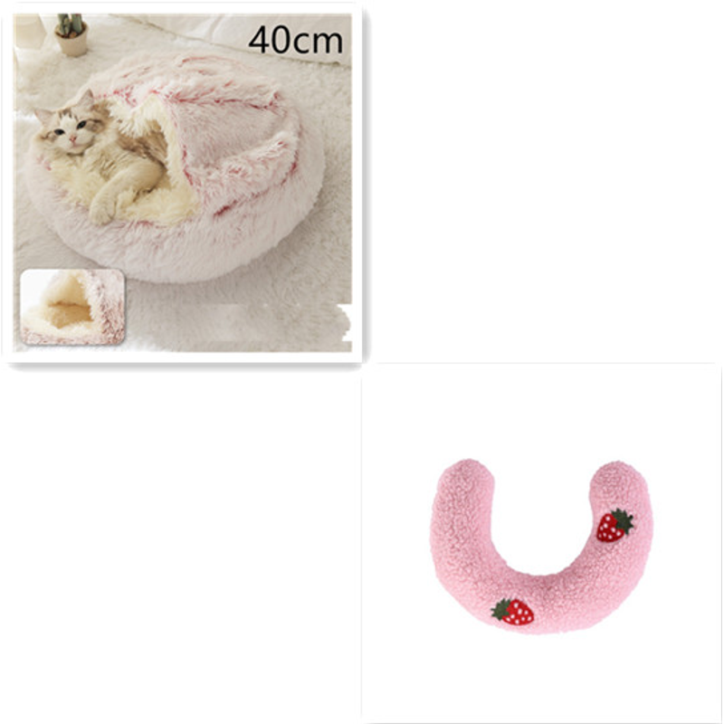 2 In 1 Dog And Cat Bed Pet Winter Bed Round Plush Warm Bed House Soft Long Plush Pets Bed Pet Products Hair Pink 40cm SetC