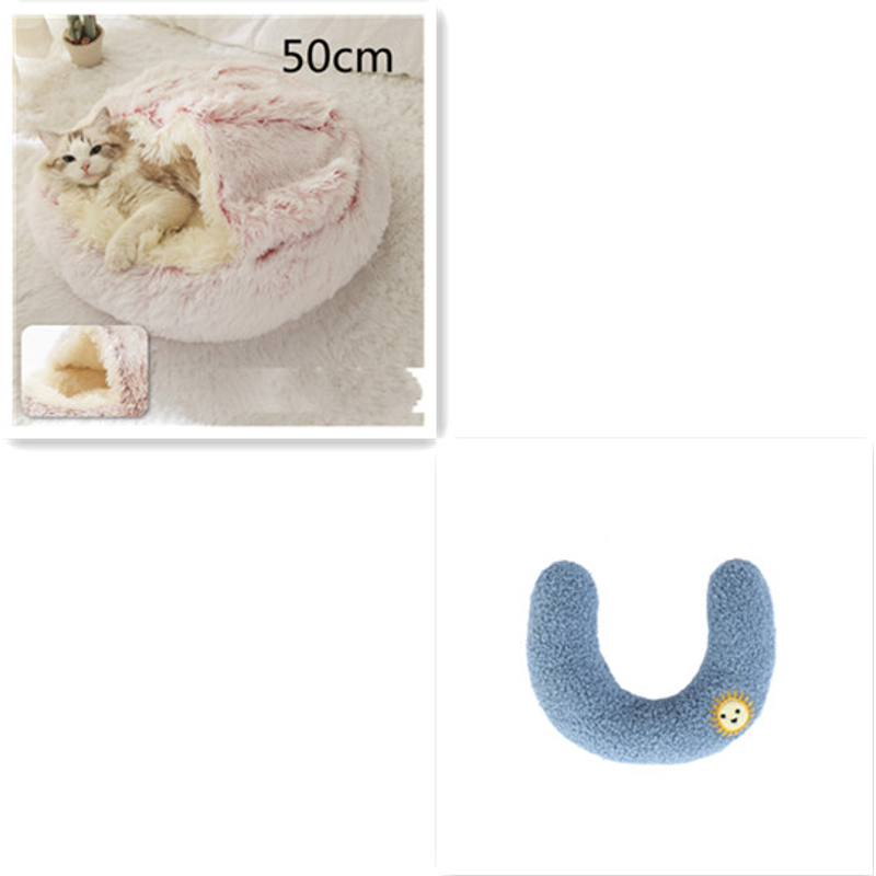 2 In 1 Dog And Cat Bed Pet Winter Bed Round Plush Warm Bed House Soft Long Plush Pets Bed Pet Products Hair Pink 50cm SetD
