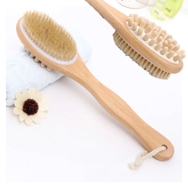 2 In 1 Dry Skin Body Massage Brush Natural Bristle Dead Skin Remover Anti Cellulite Exfoliates Blood Circulation Massage Tools