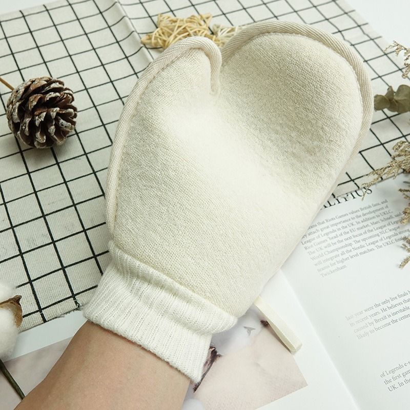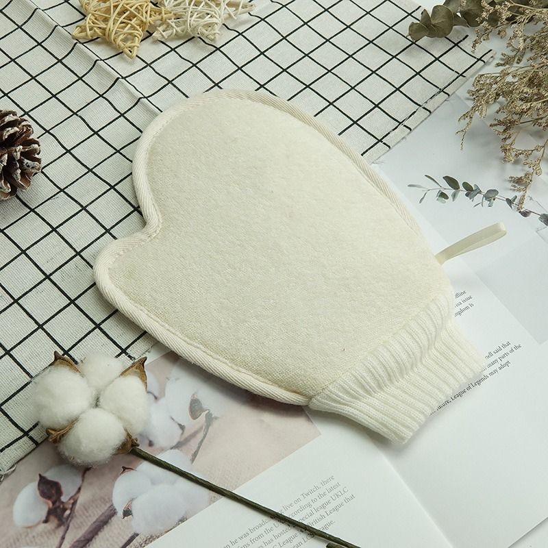 Made from high-quality cotton linen, this glove offers a soft and comfortable feel against your skin, ensuring a gentle yet effective cleanse.
