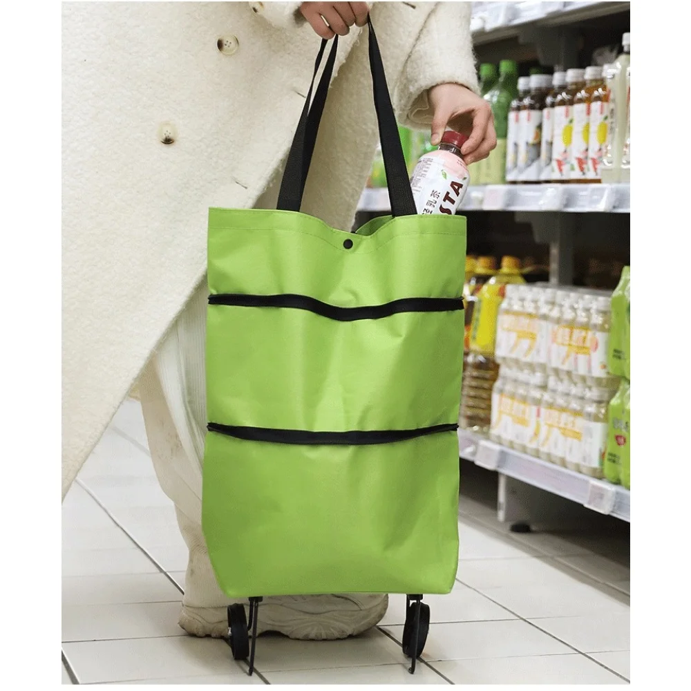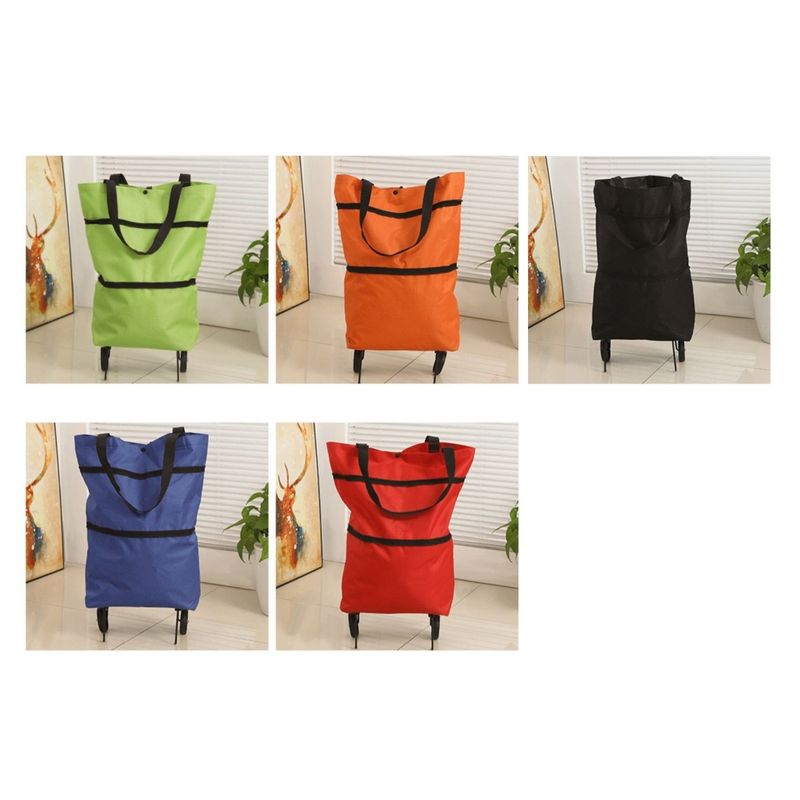 2-in-1 foldable shopping cart, shopping bag trolley and wheels, portable rolling handbag, shopping bag and wheels, waterproof tr