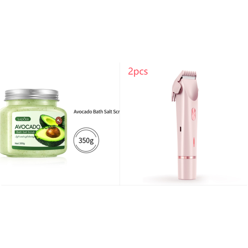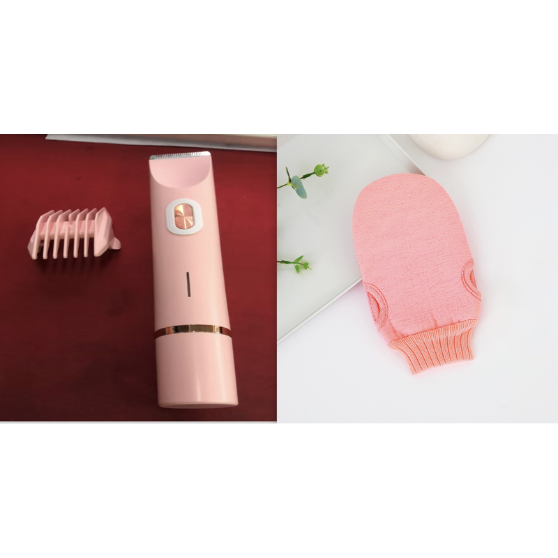 2 In 1 Hair Remover Women's Double Head Shaver Private Pubic Hair Trimmer Electric Razor Wet Dry Electric Body Hair Pink set USB