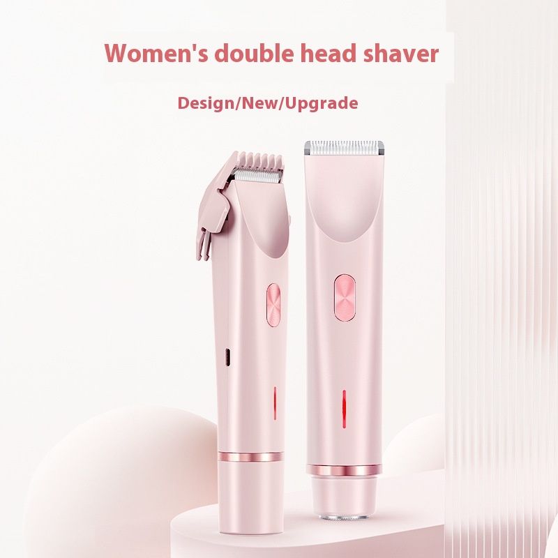 2 In 1 Hair Remover Women's Double Head Shaver Private Pubic Hair Trimmer Electric Razor Wet Dry Electric Body Hair Purple Shaver Head 1 No plug