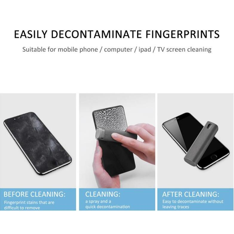 A spray and a wipe, with a small screen housekeeper, easy to decontaminate fingerprints, suitable for mobile phone/computer/iPad/TV screen cleaning