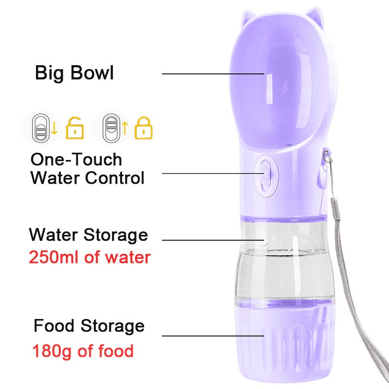 2 In 1 Portable Dog Water Bottle For Small Big Dogs Cat Outdoor Leak-proof Puppy Drinking Bowl With Food Container Pets Feeder Pet Products Water Grain Cup purple