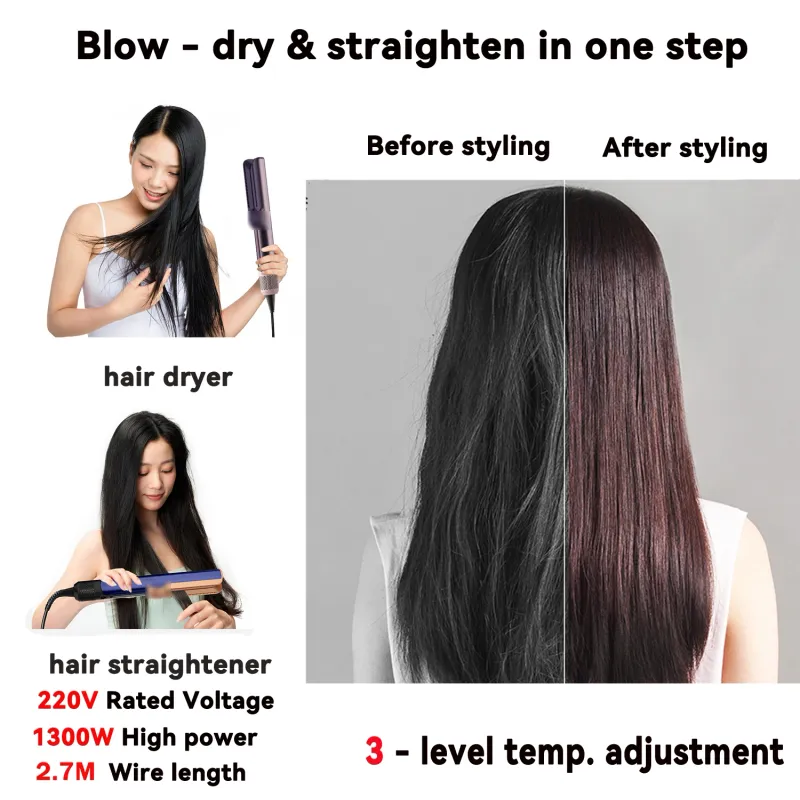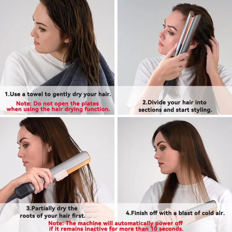 This 2-in-1 hair straightener & dryer is a hit with global hair enthusiasts, pro stylists and daily users! With wet-dry use and negative ion care, it delivers long-lasting salon-style looks at home. Close plates fully to adjust speed/temp in dryer mode; auto-off after 10s of inactivity in straightener mode—safe and hassle-free.