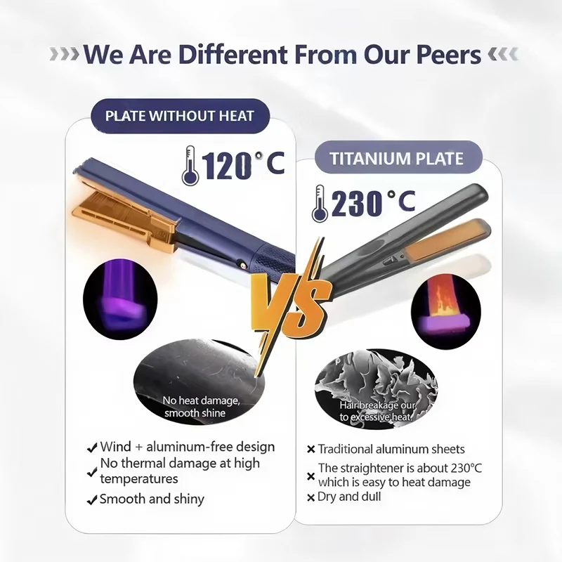 x Traditional aluminum sheetsThe straightener is about 230°Cwhich is easy to heat damagex Dry and dull