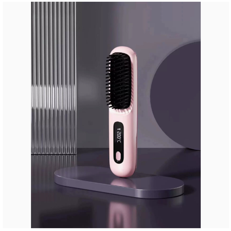 2 In 1 Straight Hair Comb Wireless Hair Straightener Brush Hair Fast Heating Portable Hot Curler USB Charging Pink