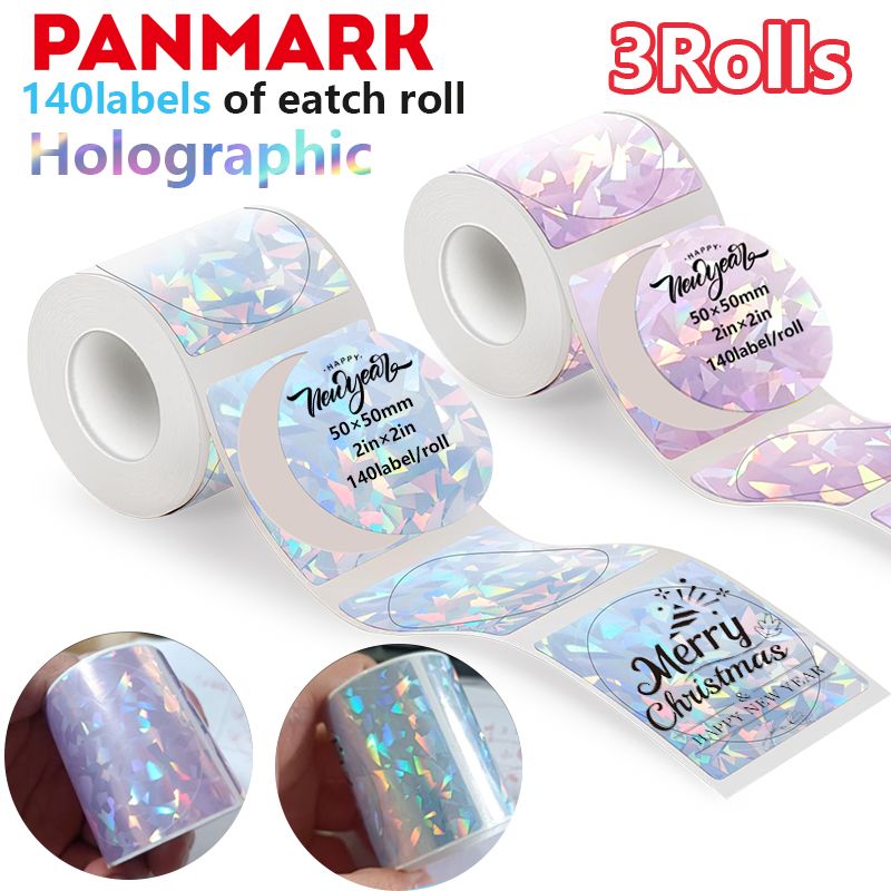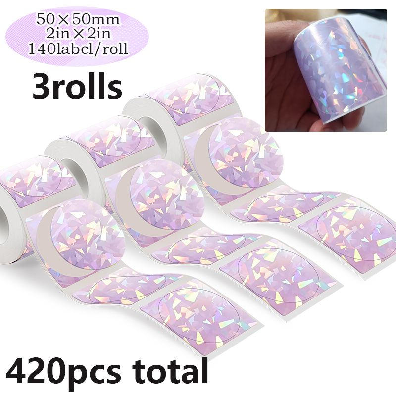 2 Inch Diamond Holographic Thermal Label fit for Phomemo m110/m220 Silver Round Self-Adhesive Direct Thermal Labels140label/roll