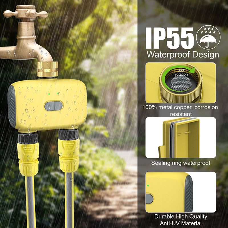 2. WiFi and BT Connectivity: Stay connected with ease, seamlessly connects to your home network. Even if your outdoor faucet is far from the router, you can manage watering schedules from anywhere using your smartphone, now with the added convenience of BT for enhanced stability and range!