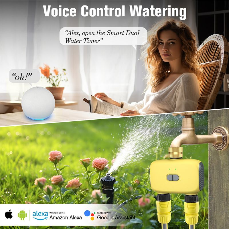 2-Outlets Tuya Smart 3/4" Faucet Water Timer APP Control Drip Irrigation System WiFi Sprinkler Works with Alexa Google