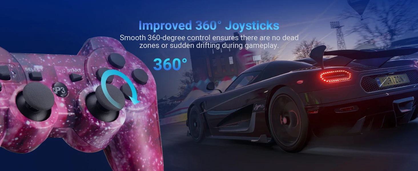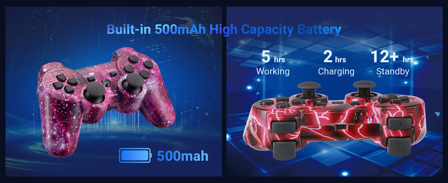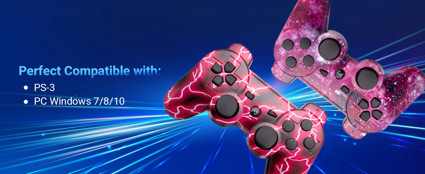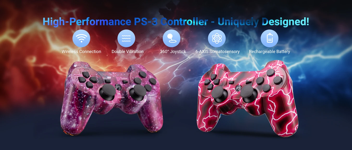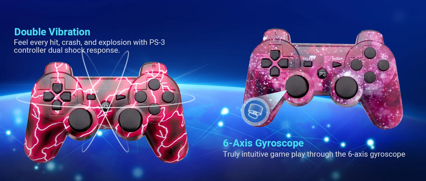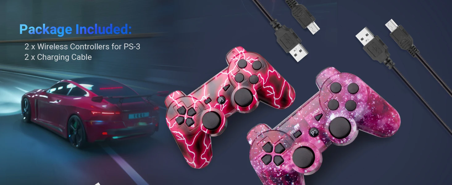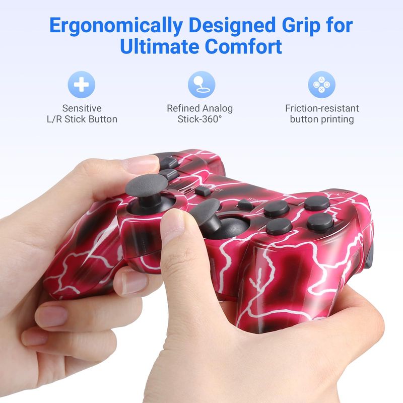2 Pack PS3 Wireless Controller Playstation 3 Controller Wireless Bluetooth Gamepad with USB Charger Cable for P3 Console
