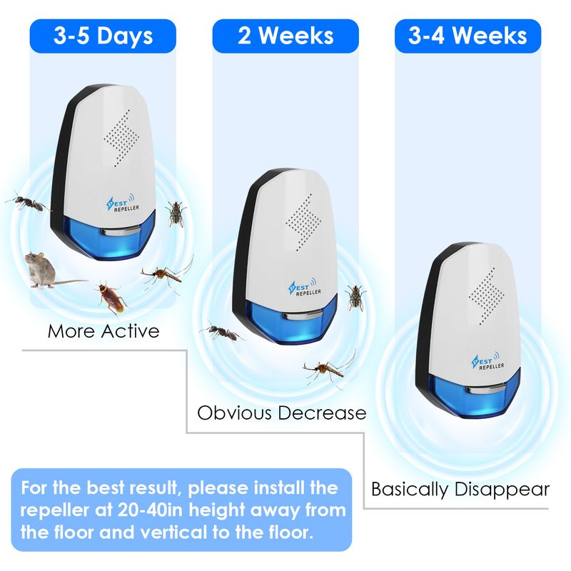 1. The repeller should be installed at 20-40in away from the floor and vertical to the floor. The height will achieve the best effect.