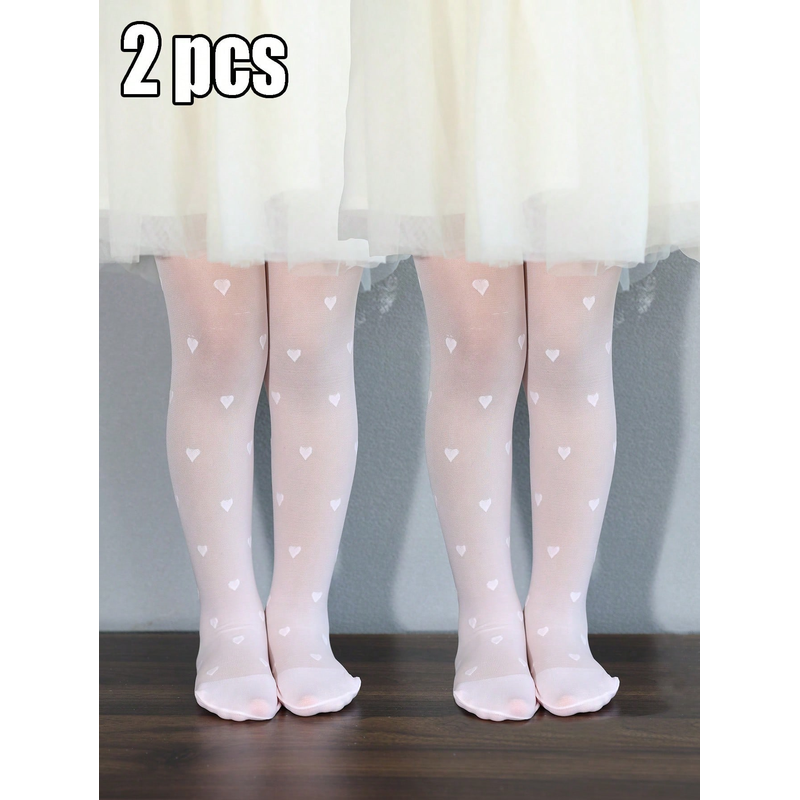 2 Pairs of Baby Girls Pantyhose Children Summer Thin Leggings Love Heart Mesh Stockings Little Princess White Tight Soft Hosiery