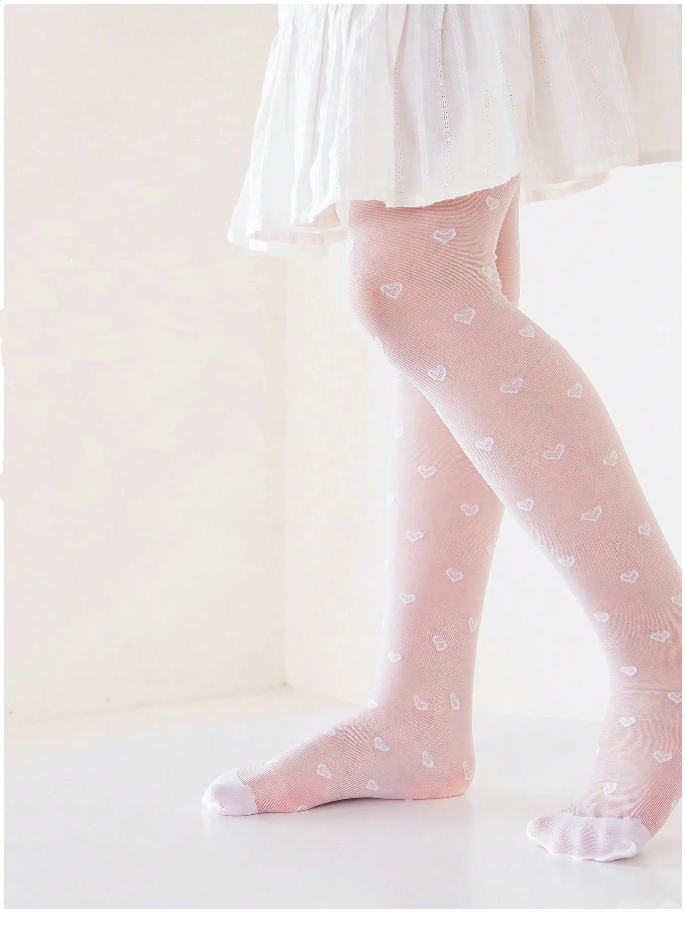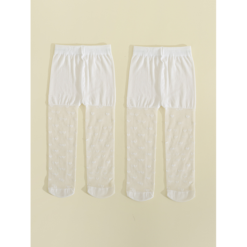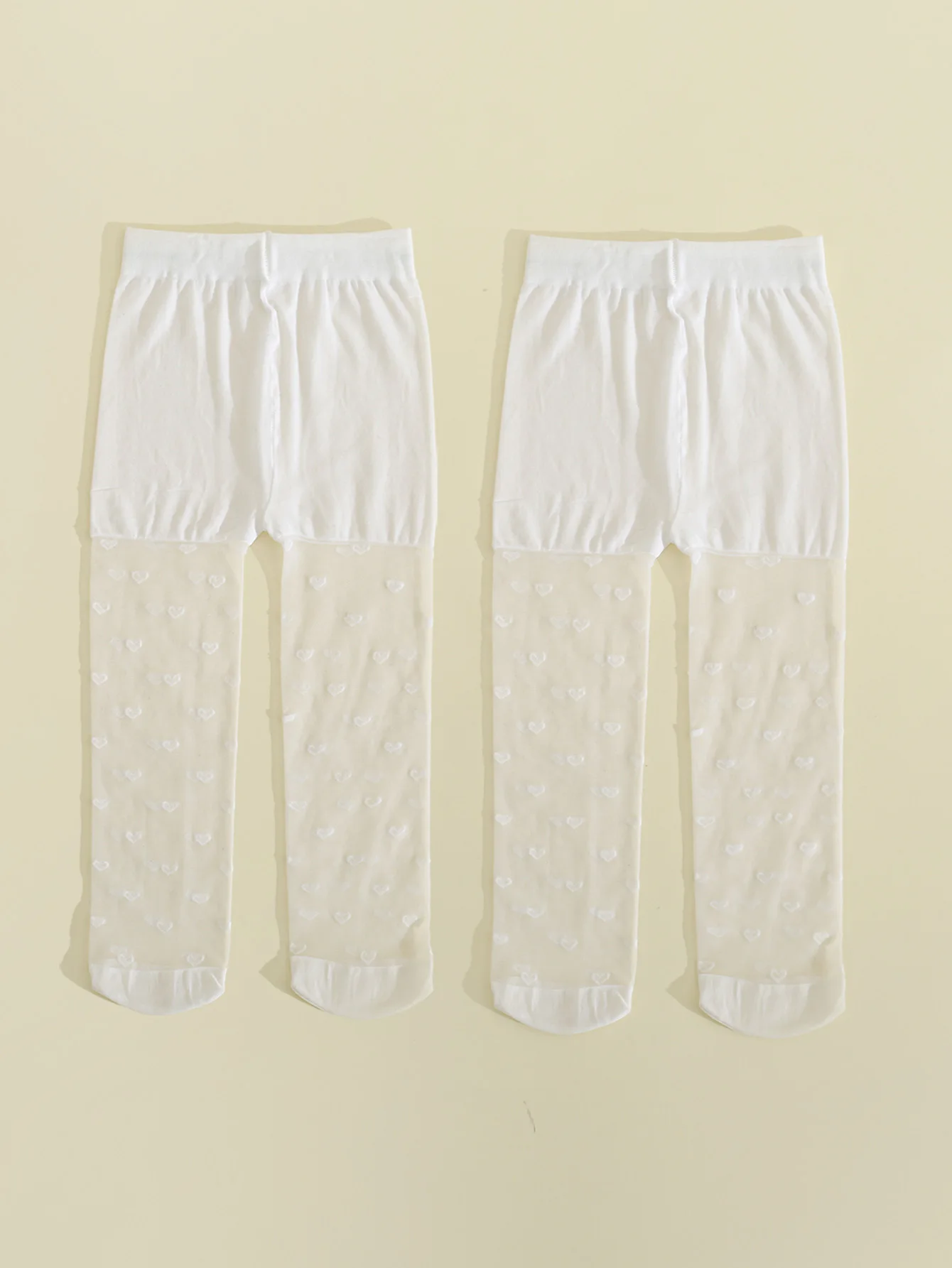 2 Pairs of Baby Girls Pantyhose Children Summer Thin Leggings Love Heart Mesh Stockings Little Princess White Tight Soft Hosiery