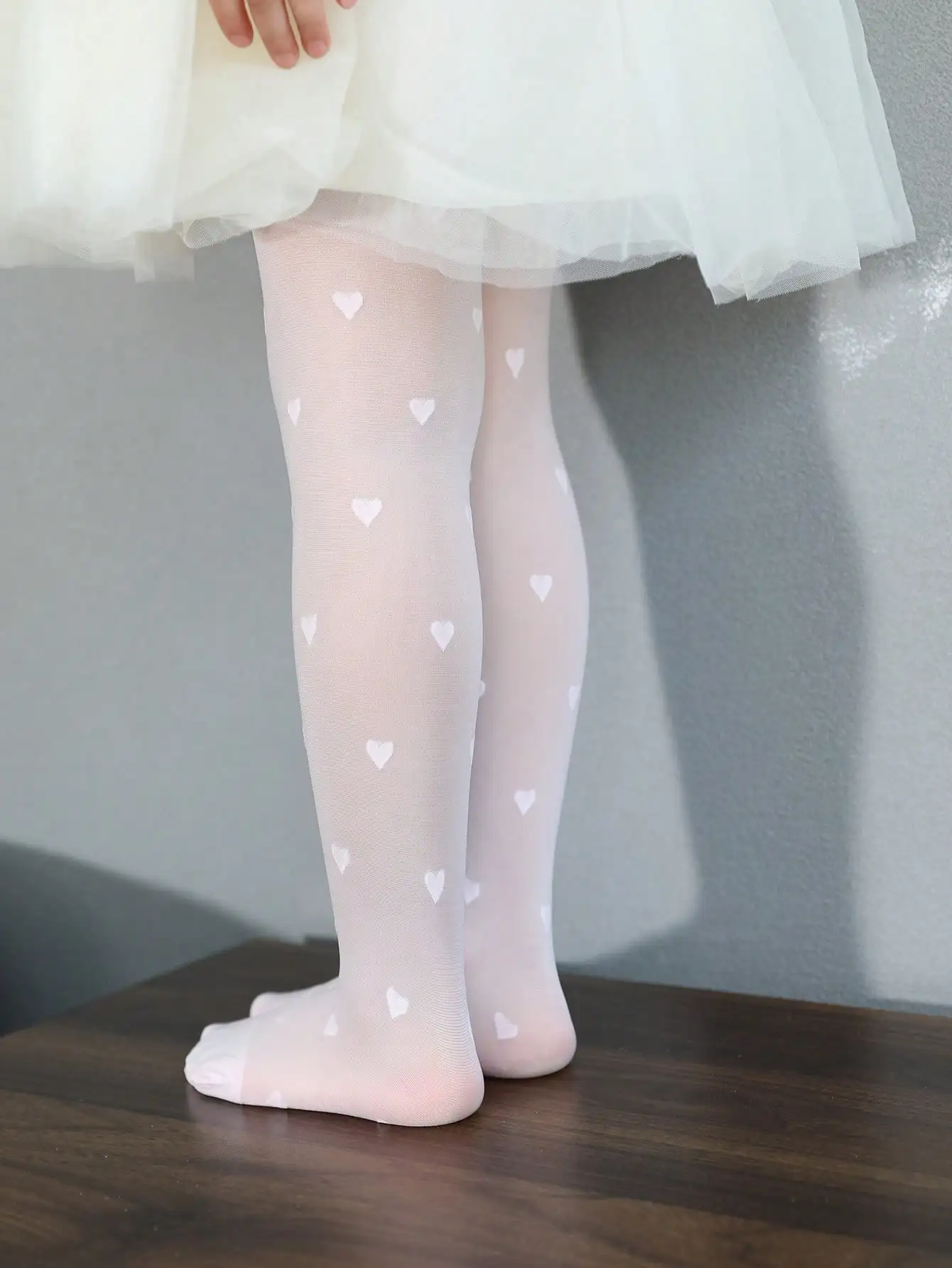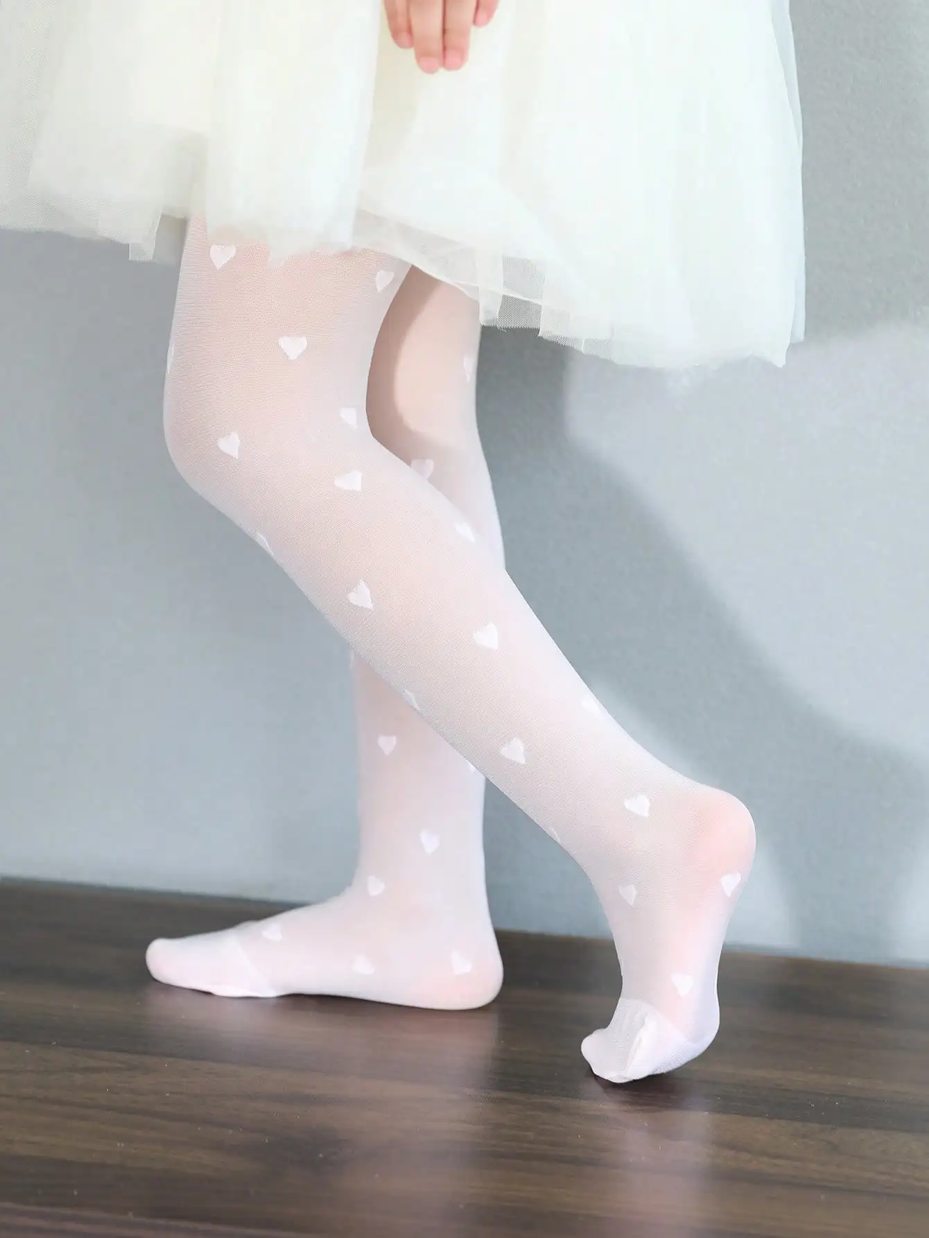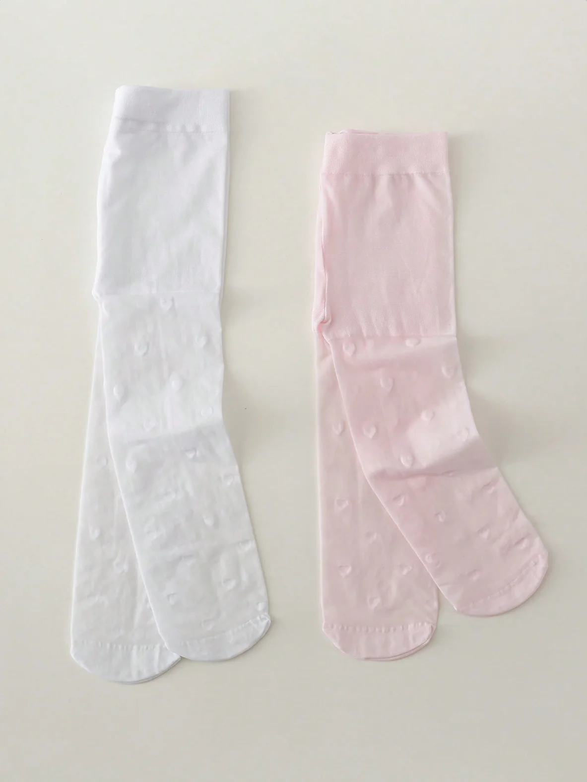 2 Pairs of Baby Girls Pantyhose Children Summer Thin Leggings Love Heart Mesh Stockings Little Princess White Tight Soft Hosiery